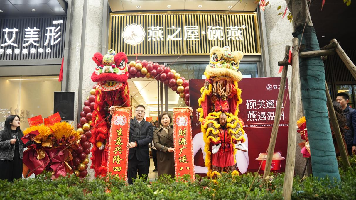 當天,紅毯鋪地共歡聚,鑼鼓喧天喜盈門。在主持人的邀請下,六位領導、貴賓為燕之屋溫州開元店的盛大開幕剪彩。隨后,恒仁商貿有限公司總經(jīng)理鄭小倫,恒仁商貿有限公司副總經(jīng)理林素珍為祥獅點睛,祝賀新店“生意興隆四季旺,財源廣進八方來”。燕之屋溫州開元店就此啟航。