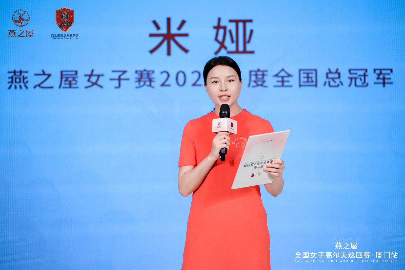 圖:燕之屋全國女子高爾夫巡回賽2023年度全國總冠軍米婭發(fā)表致辭