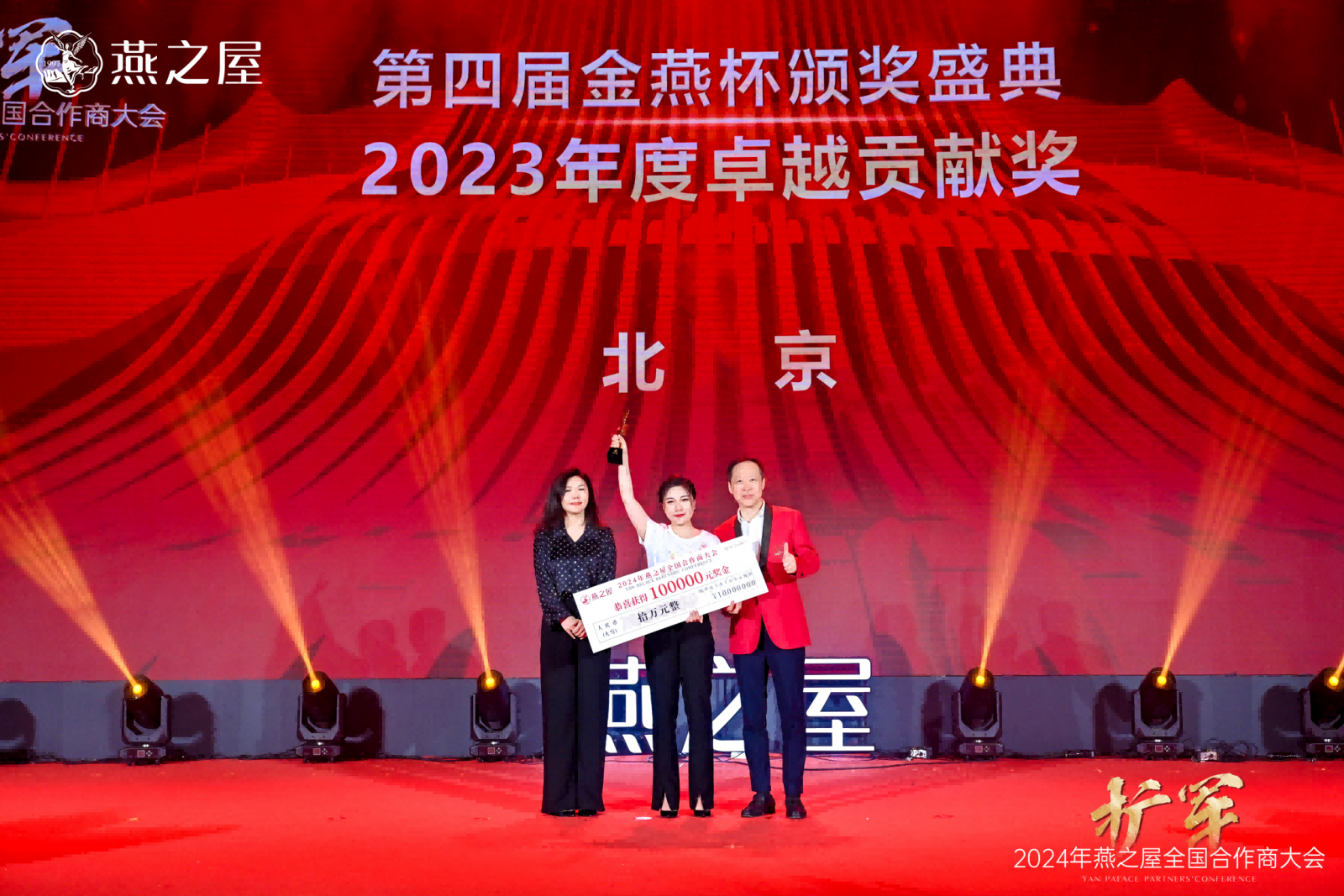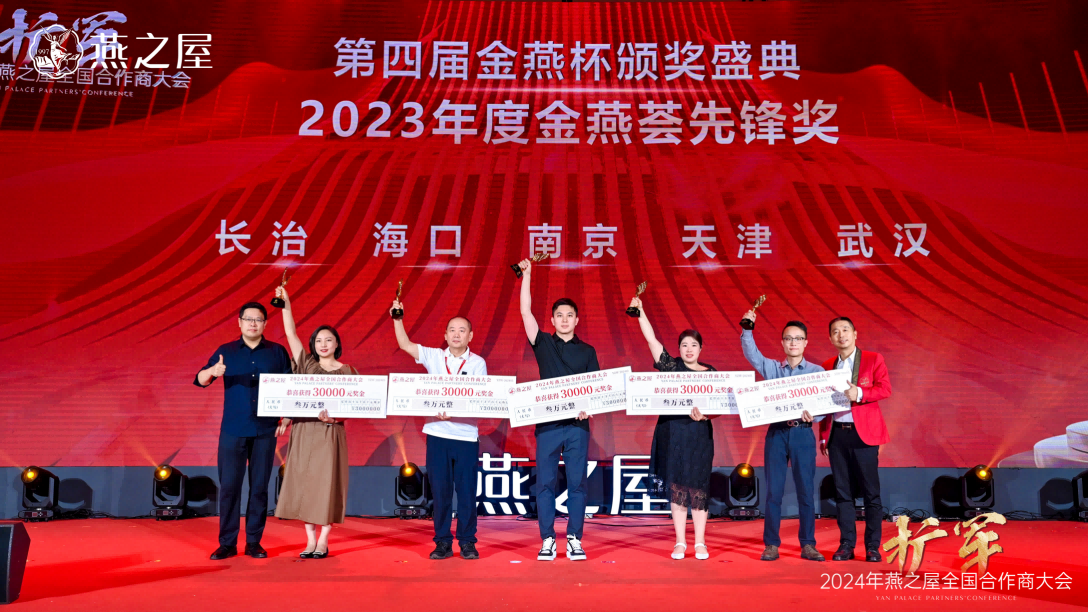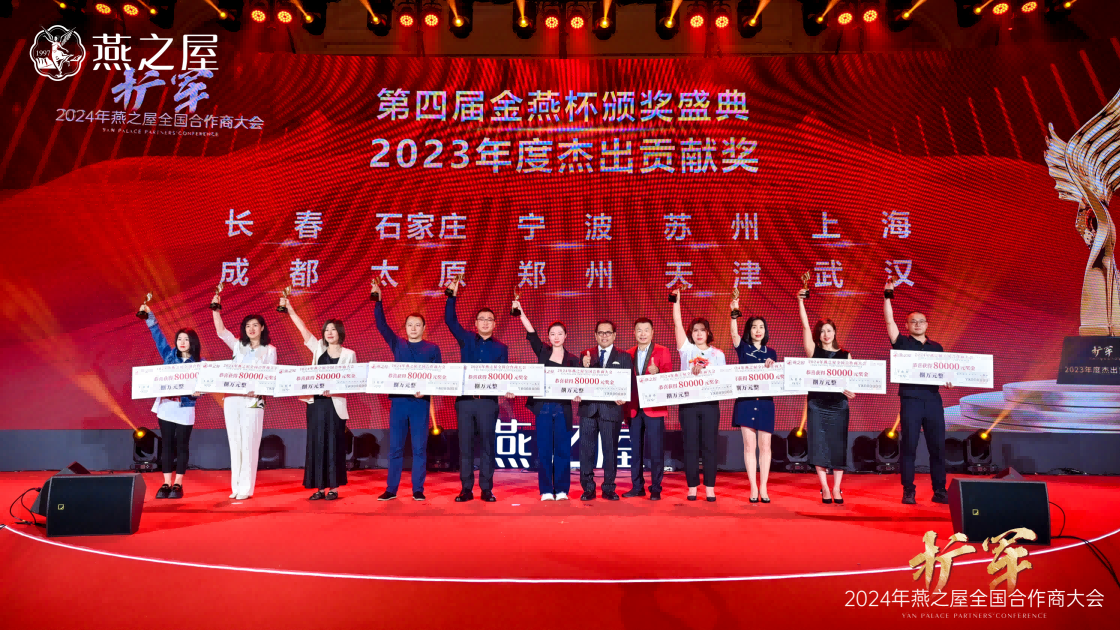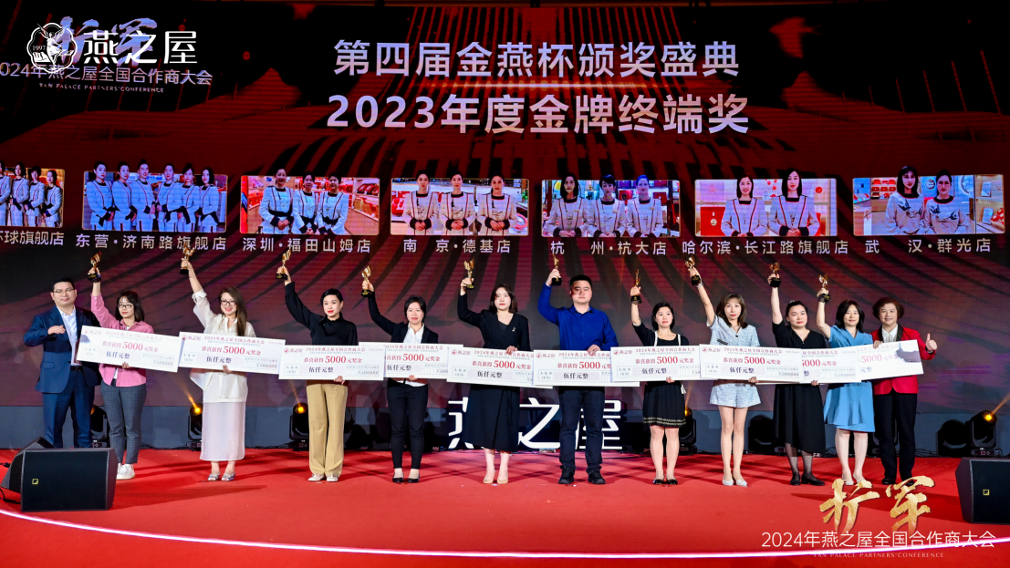 大會前夕,燕之屋特別舉辦擴(kuò)軍·2024年燕之屋全國合作商大會歡迎晚宴,以及中央廣播電視總臺云聽&燕之屋聯(lián)合數(shù)字黨建室暨愛的詩篇特別歌詠活動。知名主持人黃薇,著名主持人、朗誦藝術(shù)家陳鐸,國家一級演員宗平,知名歌手黃英、蔡淳佳呈送精彩節(jié)目,共譜愛的詩篇。大會當(dāng)晚,擴(kuò)軍·2024年燕之屋全國合作商大會答謝晚宴傾情開啟,并同步舉行第四屆金燕杯頒獎盛典,表彰、嘉獎為全國市場做出了突出表現(xiàn)的個人與市場,感謝杰出伙伴為燕之屋點亮堅實前行的璀璨坐標(biāo)。現(xiàn)場,2023年度卓越貢獻(xiàn)獎、2023年度杰出貢獻(xiàn)獎、2023年度金牌終端獎、2023年度金燕薈先鋒獎、2023年度創(chuàng)新突破獎等眾多獎項花落各家,再一次激發(fā)全員熱情與斗志。
