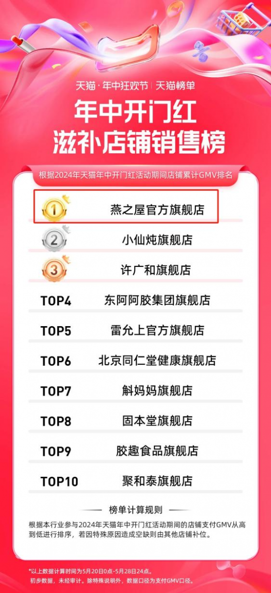 隨著618大幕拉開,第一波戰(zhàn)報火熱出爐。據阿里健康發(fā)布的2024年天貓年中開門紅健康行業(yè)成績單顯示,燕之屋官方旗艦店榮登滋補店鋪銷售榜第一、健康行業(yè)店鋪銷售榜第二,展現(xiàn)了燕之屋在品牌年輕化戰(zhàn)略中的深度思考和實踐能力。