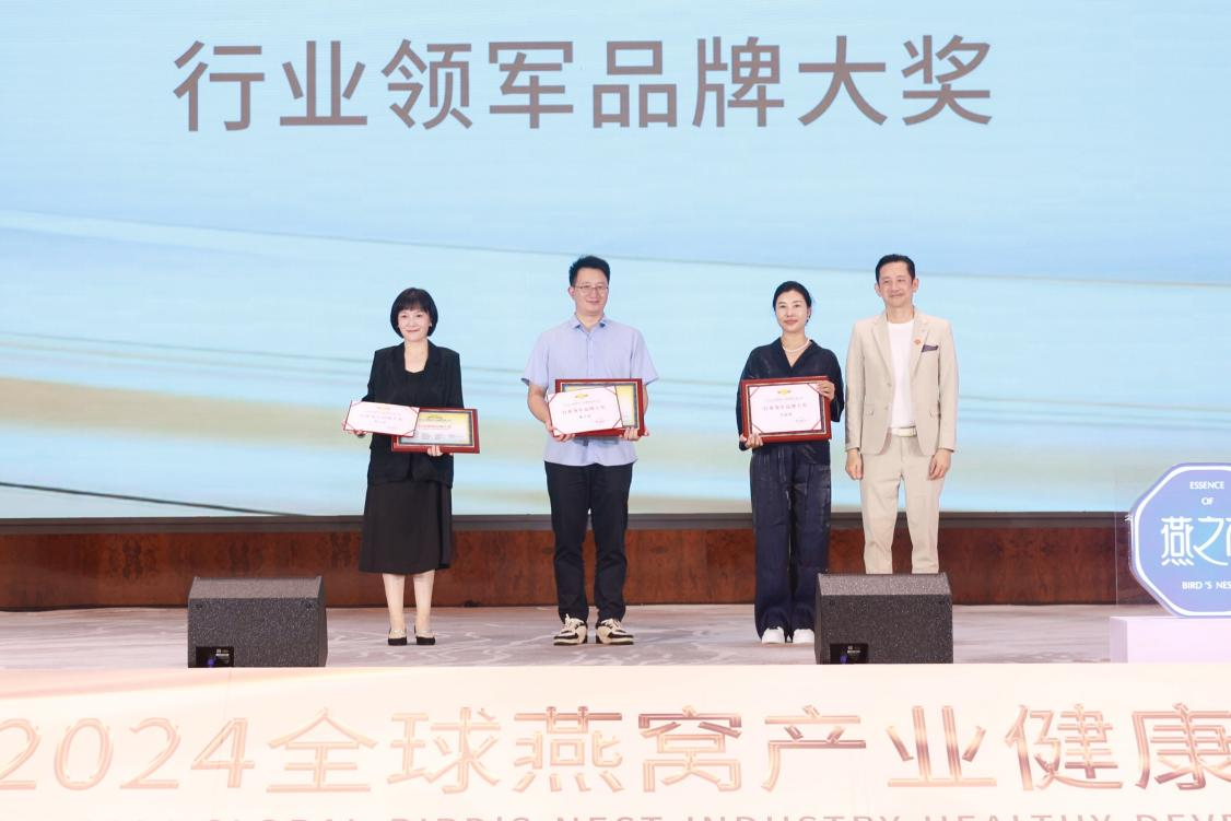 9月23日,在榜樣的力量一行業(yè)表彰盛典上,燕之屋憑借先進(jìn)的創(chuàng)新引領(lǐng)力、卓越的產(chǎn)品競(jìng)爭(zhēng)力、強(qiáng)勁的品牌影響力榮獲行業(yè)領(lǐng)軍品牌大獎(jiǎng)、行業(yè)匠心品牌大獎(jiǎng)、技術(shù)創(chuàng)新大獎(jiǎng),燕之屋創(chuàng)始人、執(zhí)行董事兼董事長(zhǎng)黃健榮獲行業(yè)領(lǐng)軍人物;燕之屋傾情助力2024全球燕窩產(chǎn)業(yè)健康發(fā)展大會(huì),進(jìn)一步推動(dòng)燕窩產(chǎn)業(yè)的創(chuàng)新發(fā)展,促進(jìn)燕窩文化的傳承與交流,為行業(yè)的繁榮貢獻(xiàn)力量,獲頒《2024全球燕窩產(chǎn)業(yè)健康發(fā)展大會(huì)》戰(zhàn)略合作單位,并成為《2024全球燕窩產(chǎn)業(yè)健康發(fā)展大會(huì)》唯一指定碗燕即食燕窩品牌,燕之屋公關(guān)總監(jiān)楊航上臺(tái)領(lǐng)獎(jiǎng)。