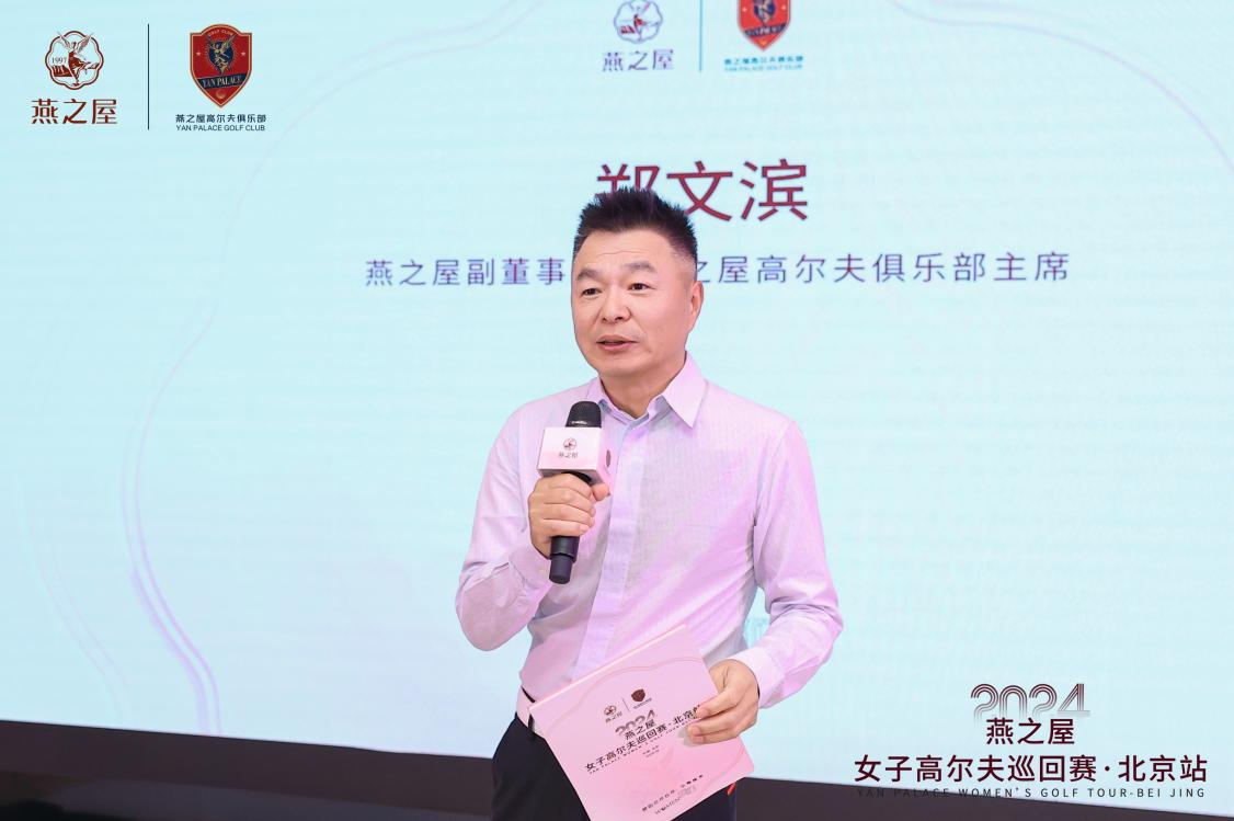開球儀式上,鄭文濱在致辭中向所有嘉賓、球友表示歡迎和感謝,并說道:“去年,燕之屋女子高爾夫巡回賽正式開賽,我們的高爾夫俱樂部也應(yīng)運而生。一年多來,燕之屋在這個全新的領(lǐng)域不斷探索,致力于將滋補珍品燕窩和時尚優(yōu)雅的高爾夫相結(jié)合,為高品位人士帶去美與健康生活。我們以賽事為舞臺,讓更多人看到女性力量的綻放;我們以俱樂部為橋梁,構(gòu)建屬于高球愛好者的高品質(zhì)互動平臺,在揮桿與交流中,共同描繪滋養(yǎng)身心、積極美好的生活藍圖。”隨后,鄭文濱攜手各位嘉賓移步推桿區(qū)揮桿開球,2024燕之屋女子高爾夫巡回賽·北京站賽事正式拉開序幕。