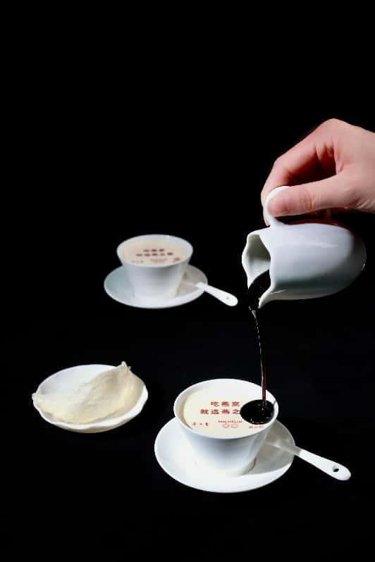 阿膠燕窩發(fā)酵酸奶酪,山東阿膠、燕之屋燕窩與驢奶三種珍稀食材創(chuàng)意融合,經(jīng)24小時發(fā)酵沉淀成絲滑酸奶酪,頂部搭配酒糟阿膠,入口絲滑綿密,透出絲絲膠香,滋養(yǎng)與口感雙重升華。這一款甜品則跳脫中餐語境,是對“滋養(yǎng)”概念最當(dāng)代表達(dá)的寫照,跨越時空的食材協(xié)奏,正是王浩全對“滋補(bǔ)”理念的重釋。